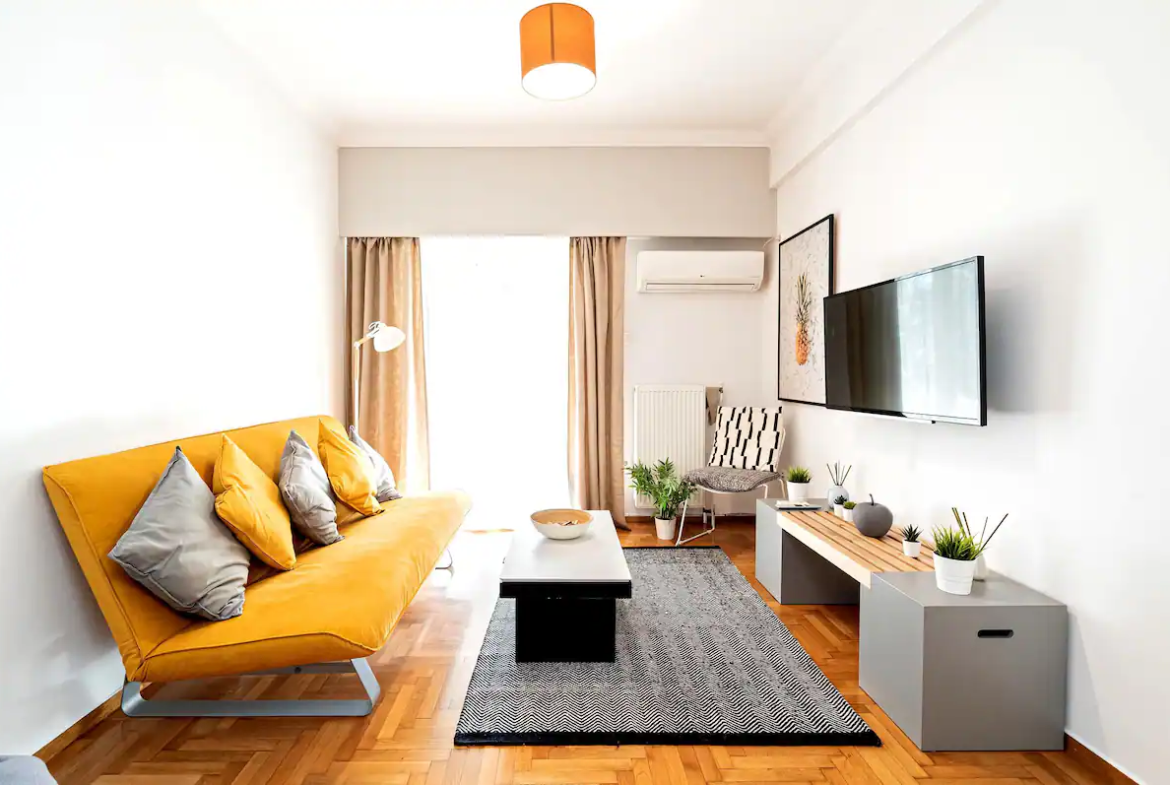 Το διαμέρισμα είναι επιμελώς σχεδιασμένο για να δημιουργήσει μια ζεστή και φιλόξενη ατμόσφαιρα. Μόλις περάσετε την πόρτα, θα σας υποδεχτεί ένας άνετος χώρος διαβίωσης που συνδυάζει αρμονικά τις σύγχρονες ανέσεις με μια πινελιά παραδοσιακού ελληνικού χαρακτήρα. Το σαλόνι διαθέτει άνετους καναπέδες, ιδανικούς για να χαλαρώσετε μετά από μια μέρα περιηγήσεων ή να απολαύσετε μια ήσυχη βραδιά στο σπίτι. Μεγάλα παράθυρα αφήνουν το φυσικό φως να πλημμυρίσει τον χώρο, προσφέροντας μια φωτεινή και ευάερη αίσθηση που κάνει το διαμέρισμα ακόμα πιο φιλόξενο.