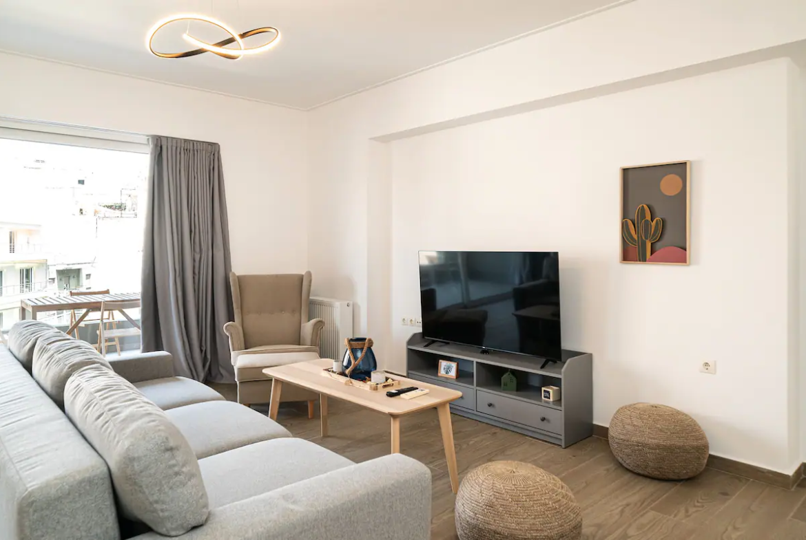 Nestled in a quiet neighborhood, this apartment serves as a peaceful retreat from the city’s hustle and bustle. After a day of sightseeing, you can unwind on the balcony or relax in the spacious living room, creating the perfect balance between urban excitement and tranquil living. With its central location, stylish interiors, and modern amenities, this apartment provides an ideal base for experiencing the very best of Athens. Whether you’re here for a cultural adventure, a beach getaway, or a relaxing escape, our home offers the ultimate in comfort and convenience for your stay.